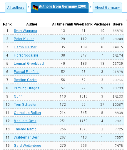 Seeing themselves raising in the rankings over time may become a powerful motivator that encourages them to contribute with even more packages. The more packages authors contribute, more users will become interested in their work.